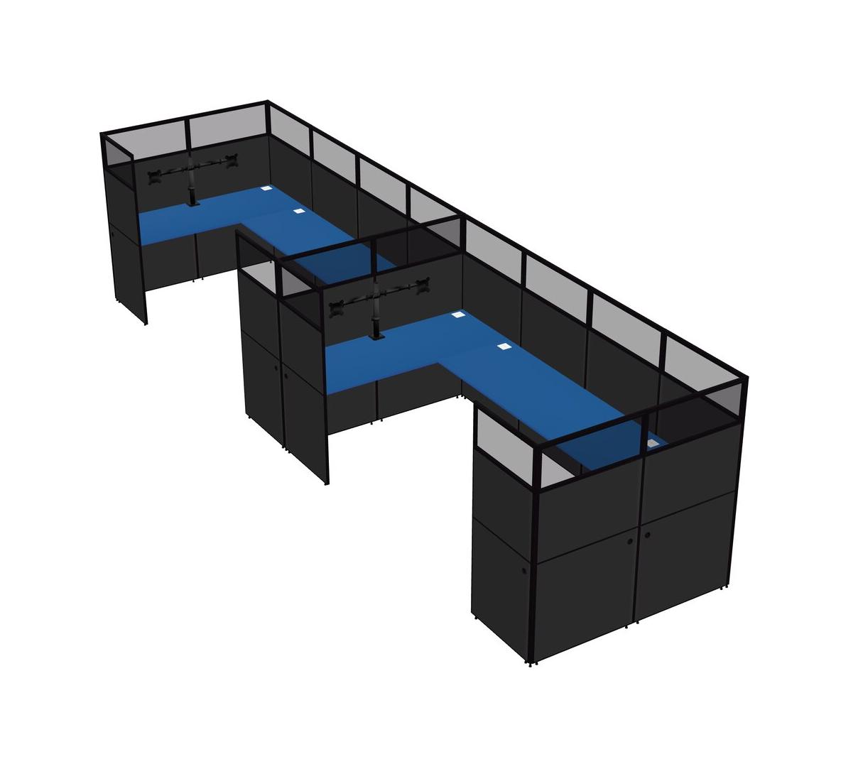 Prism Blue U-shaped Panel System For 2 Person + Monitor Arm (double Arms) For 2 User(s)