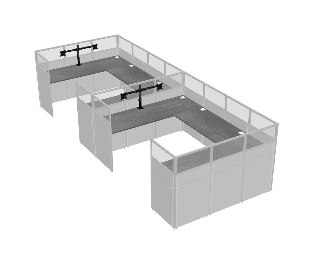 Grey U-shaped Panel System For 2 Person + Monitor Arm (double Arms) For 2 User(s)