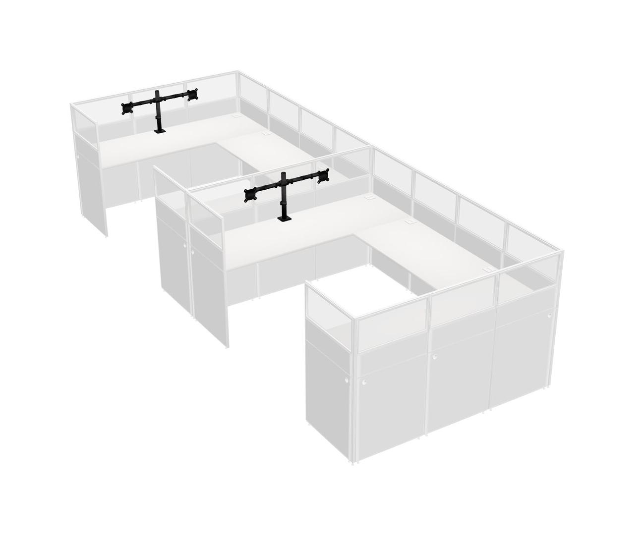 White U-shaped Panel System For 2 Person + Monitor Arm (double Arms) For 2 User(s)