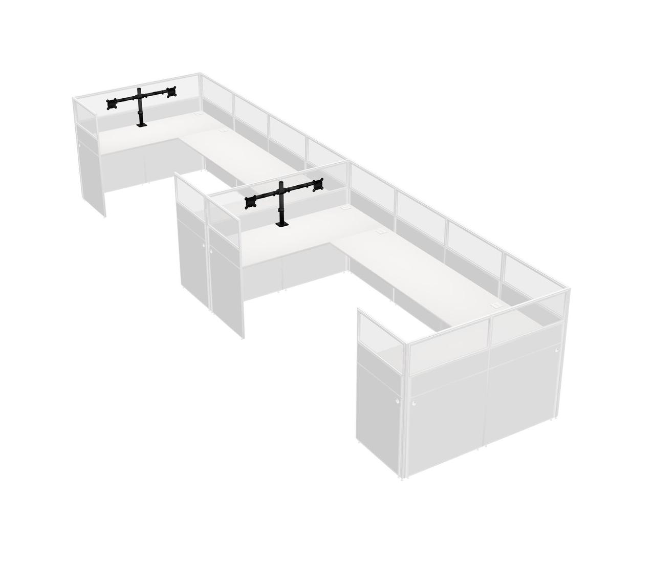 White U-shaped Panel System For 2 Person + Monitor Arm (double Arms) For 2 User(s)