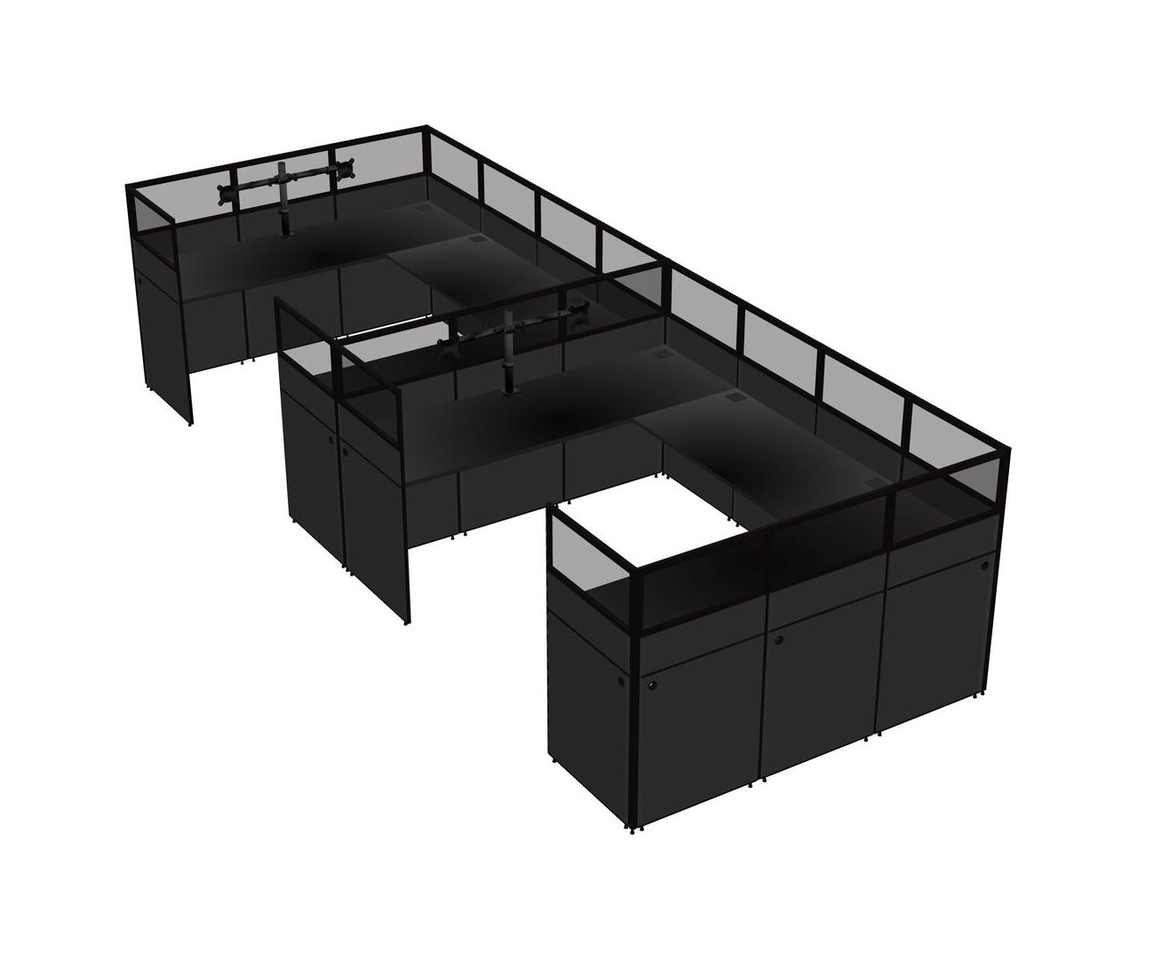 Black U-shaped Panel System For 2 Person + Monitor Arm (double Arms) For 2 User(s)