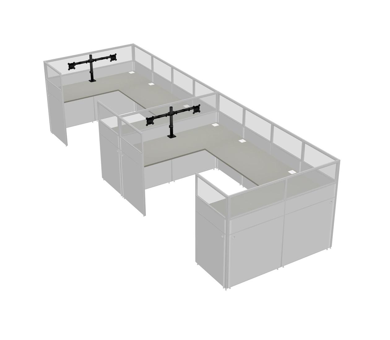 Grey Shadows U-shaped Panel System For 2 Person + Monitor Arm (double Arms) For 2 User(s)
