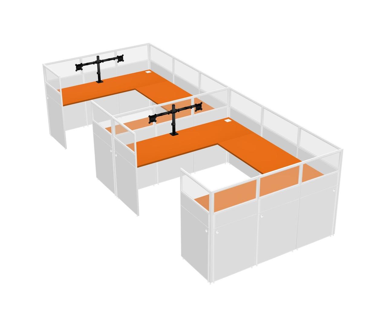 Orange U-shaped Panel System For 2 Person + Monitor Arm (double Arms) For 2 User(s)