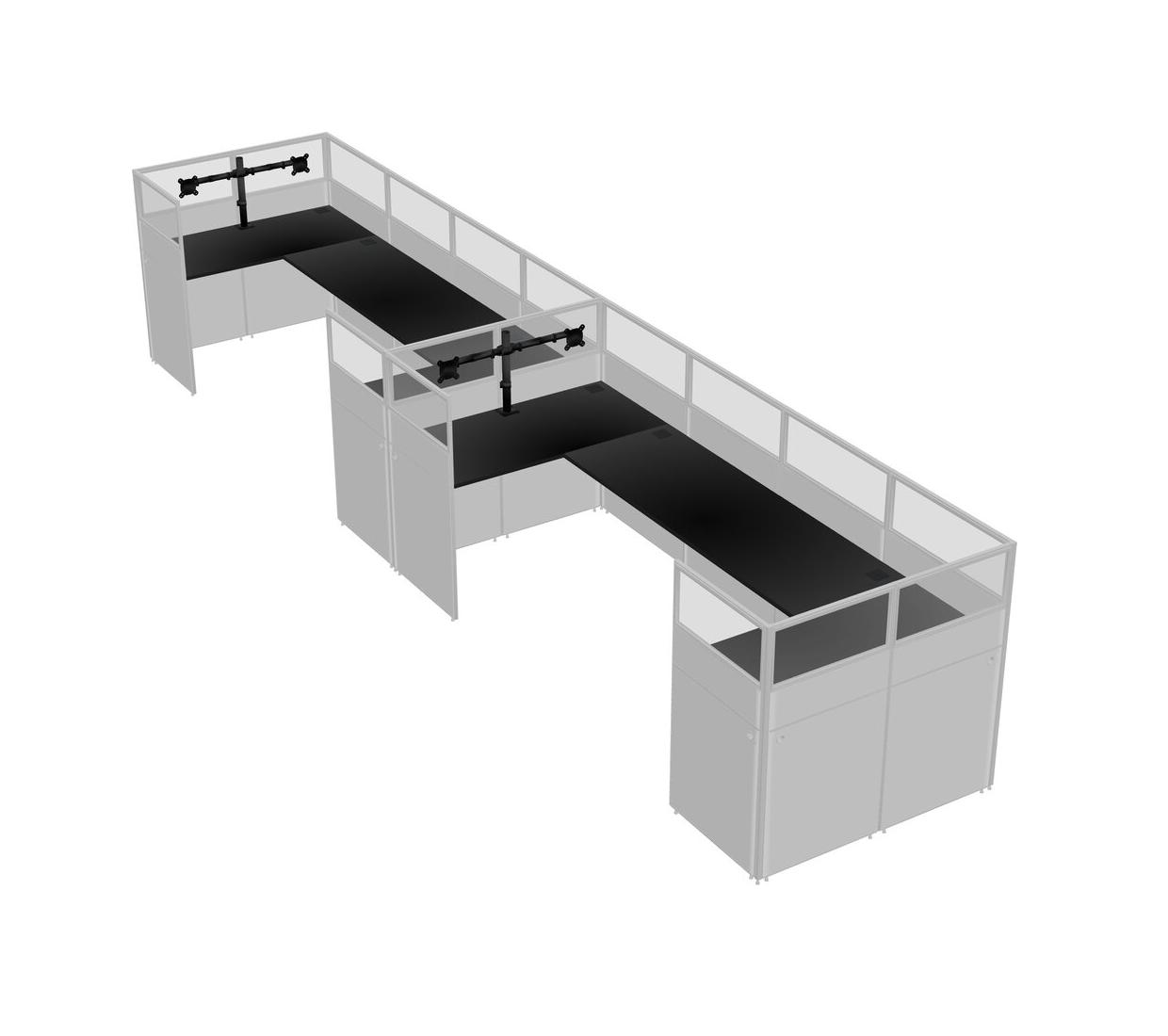 Black U-shaped Panel System For 2 Person + Monitor Arm (double Arms) For 2 User(s)