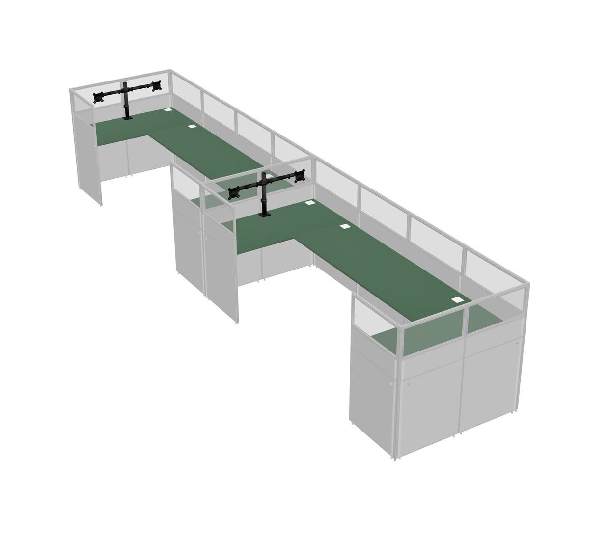 Green U-shaped Panel System For 2 Person + Monitor Arm (double Arms) For 2 User(s)
