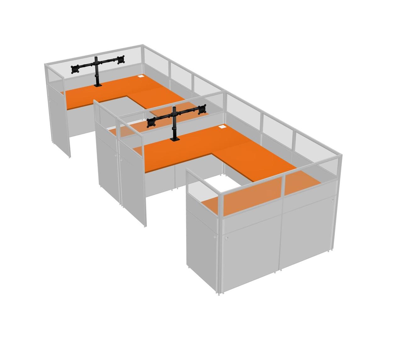 Orange U-shaped Panel System For 2 Person + Monitor Arm (double Arms) For 2 User(s)