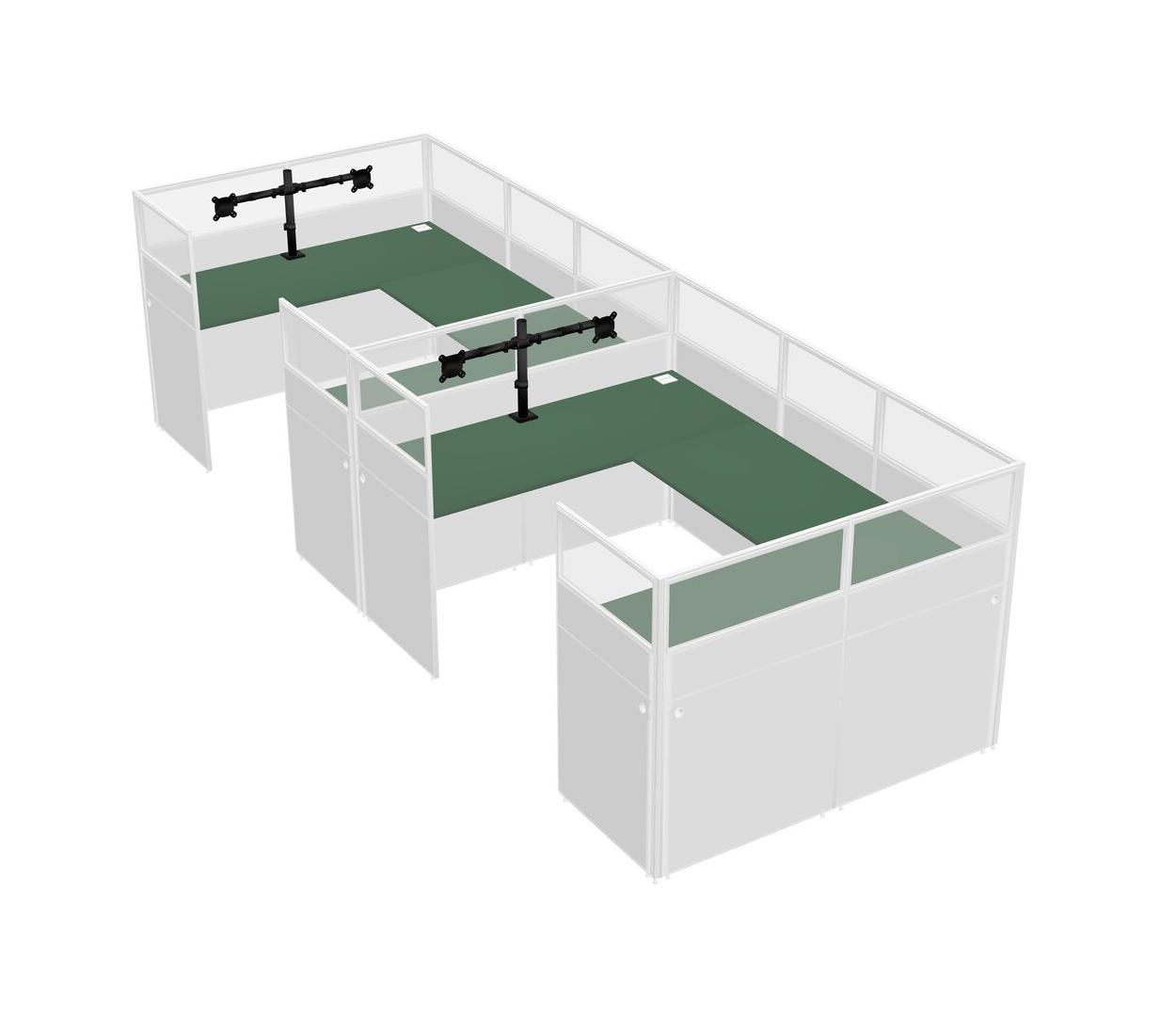 Green U-shaped Panel System For 2 Person + Monitor Arm (double Arms) For 2 User(s)