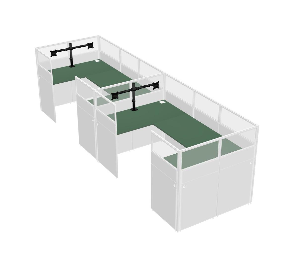Green U-shaped Panel System For 2 Person + Monitor Arm (double Arms) For 2 User(s)