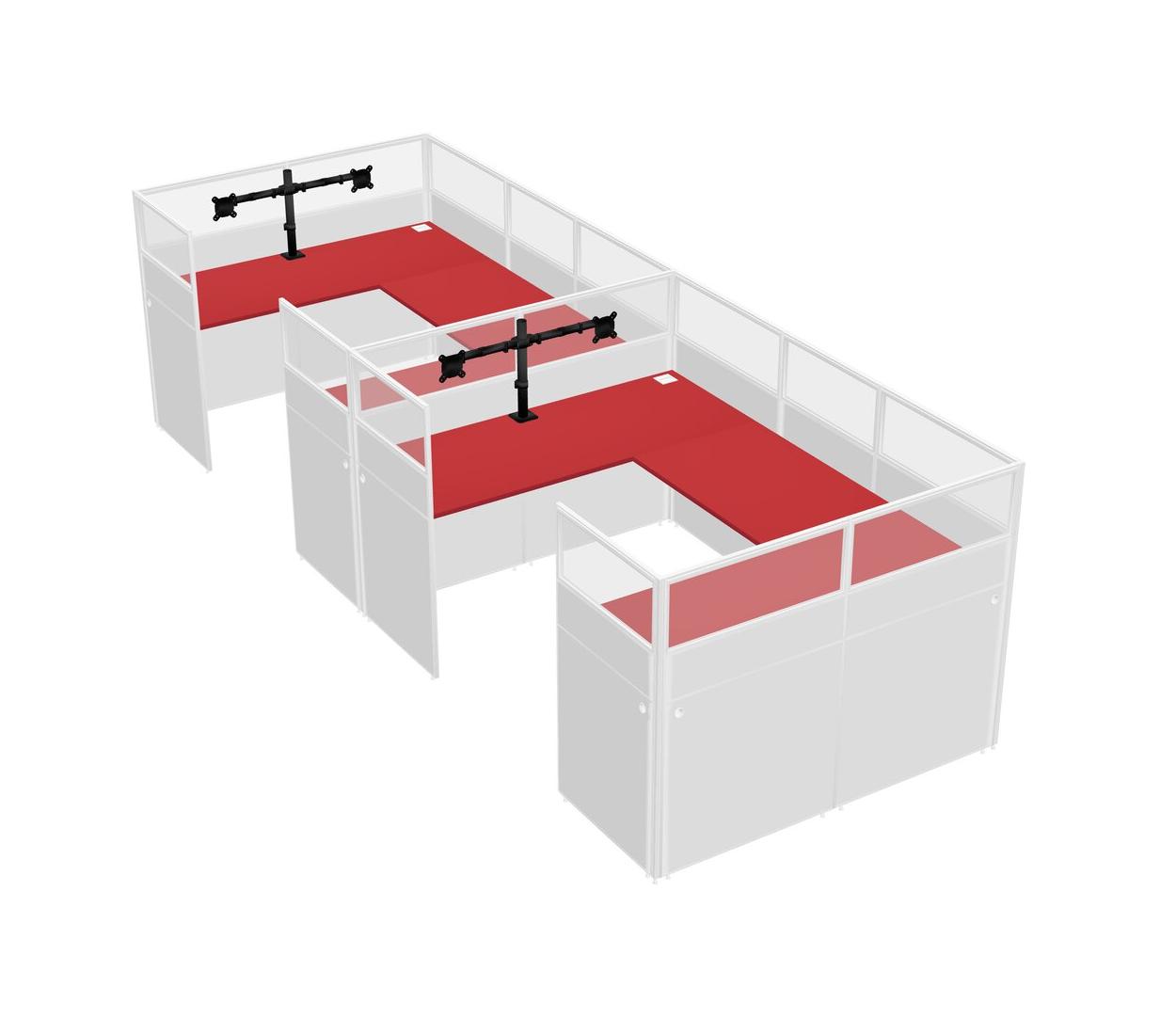 Prism Red U-shaped Panel System For 2 Person + Monitor Arm (double Arms) For 2 User(s)