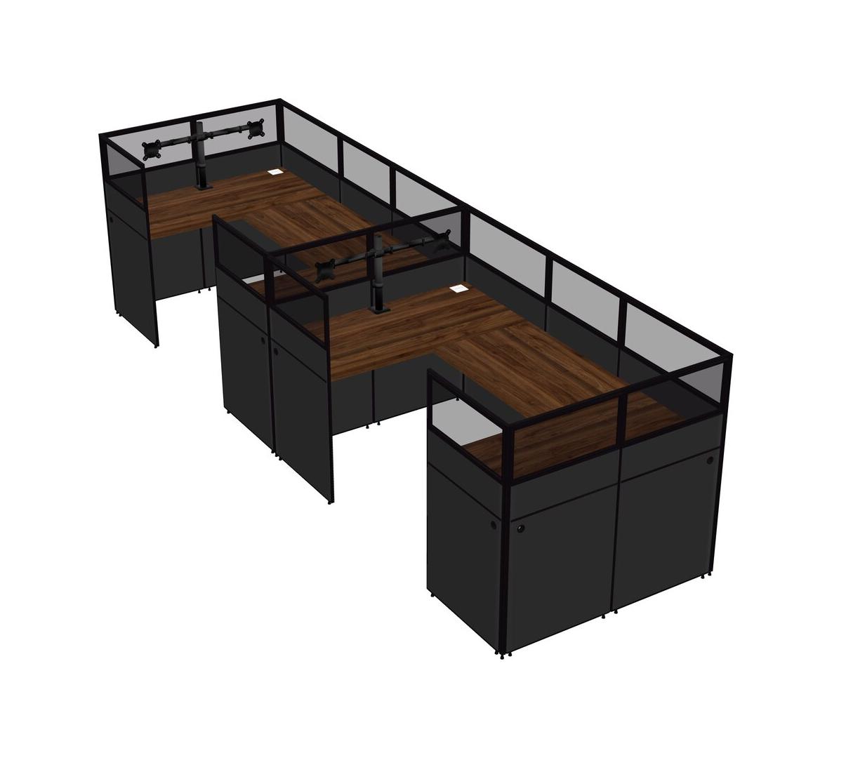 Columbia Walnut U-shaped Panel System For 2 Person + Monitor Arm (double Arms) For 2 User(s)