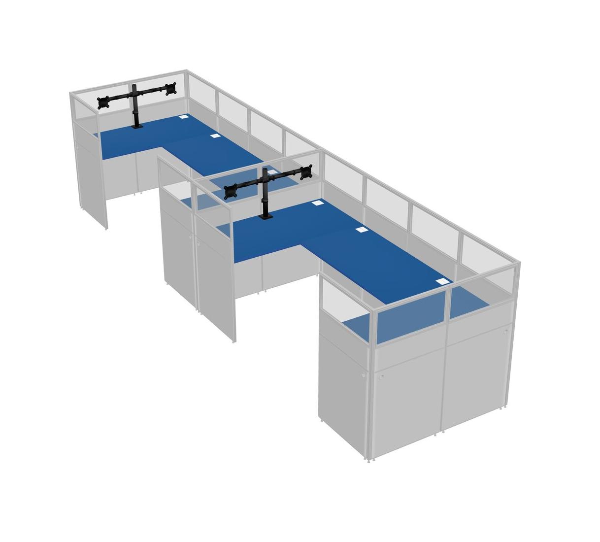 Prism Blue U-shaped Panel System For 2 Person + Monitor Arm (double Arms) For 2 User(s)