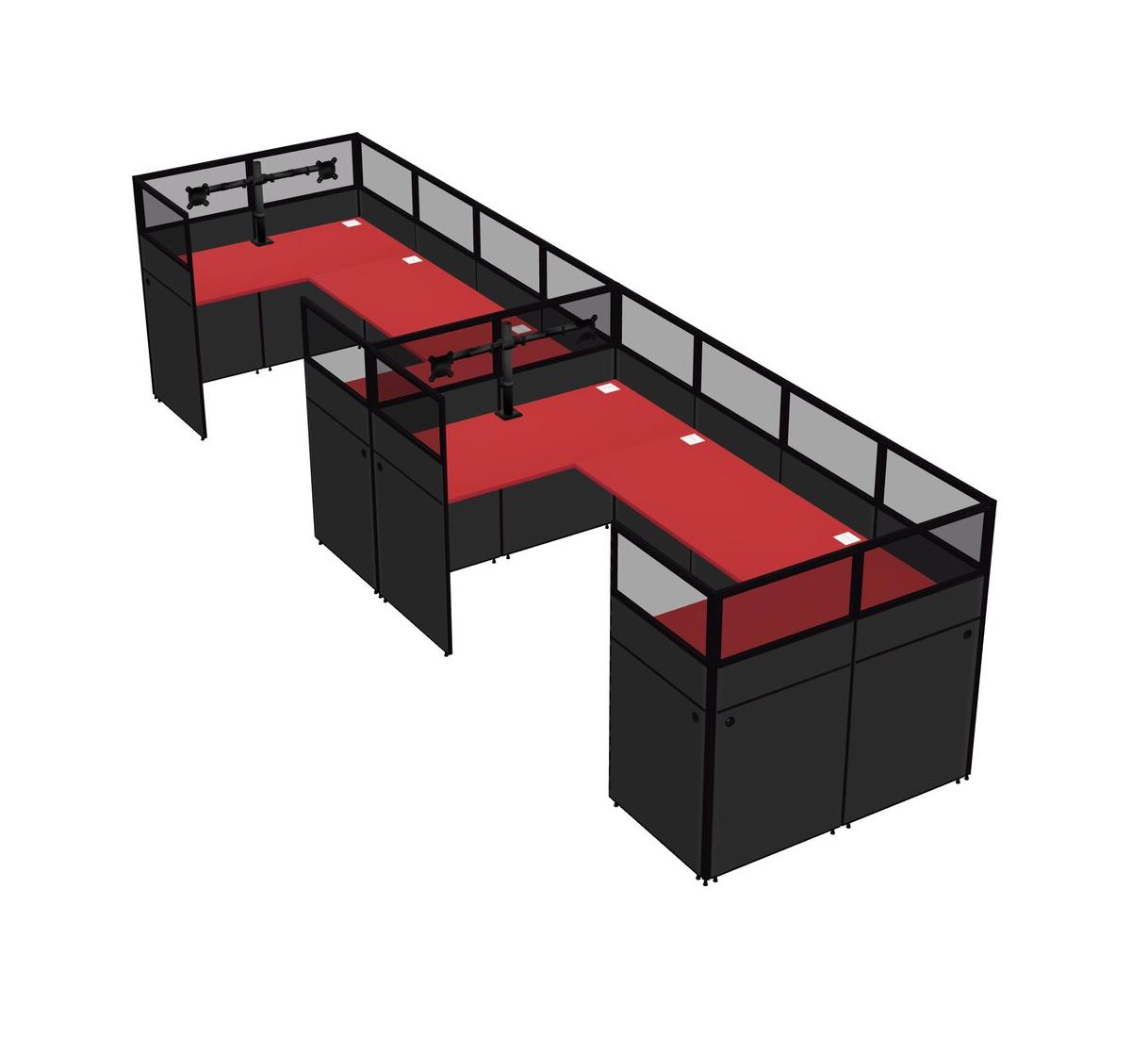 Prism Red U-shaped Panel System For 2 Person + Monitor Arm (double Arms) For 2 User(s)