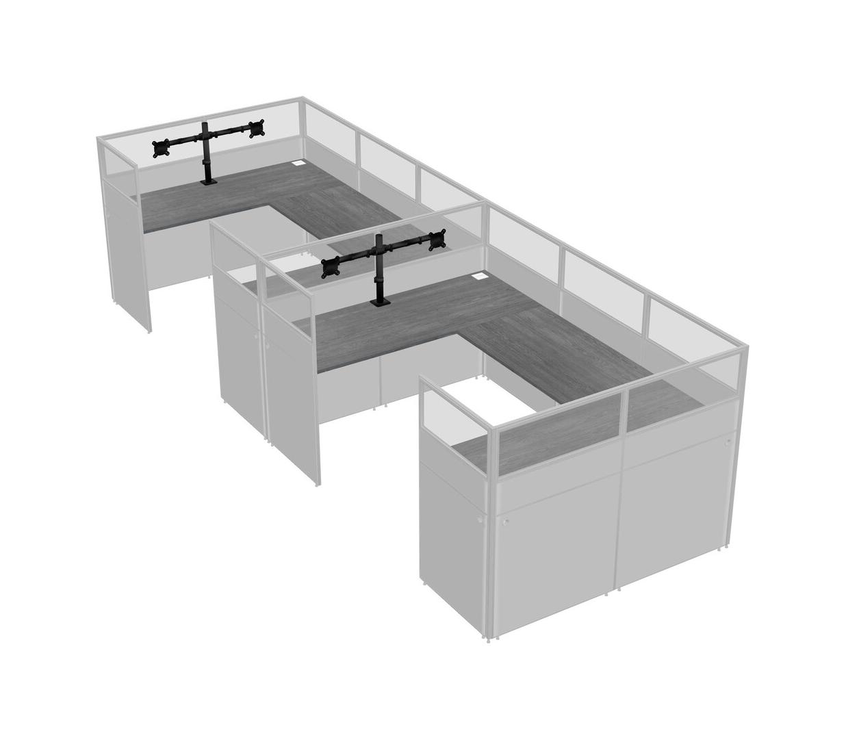 Grey U-shaped Panel System For 2 Person + Monitor Arm (double Arms) For 2 User(s)