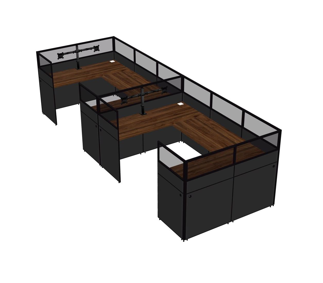 Columbia Walnut U-shaped Panel System For 2 Person + Monitor Arm (double Arms) For 2 User(s)