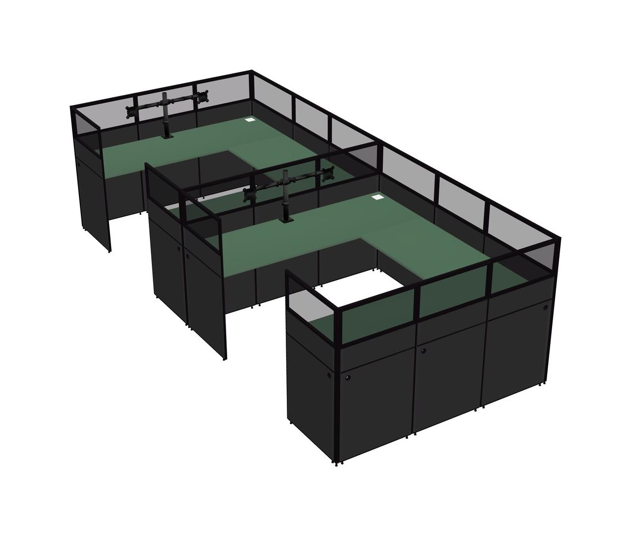 Green U-shaped Panel System For 2 Person + Monitor Arm (double Arms) For 2 User(s)