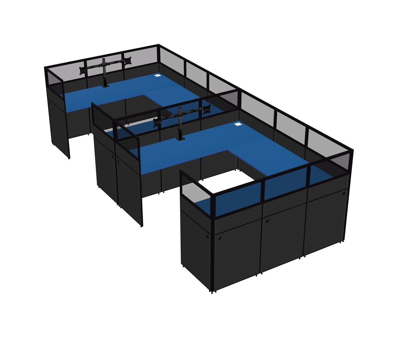Prism Blue U-shaped Panel System For 2 Person + Monitor Arm (double Arms) For 2 User(s)