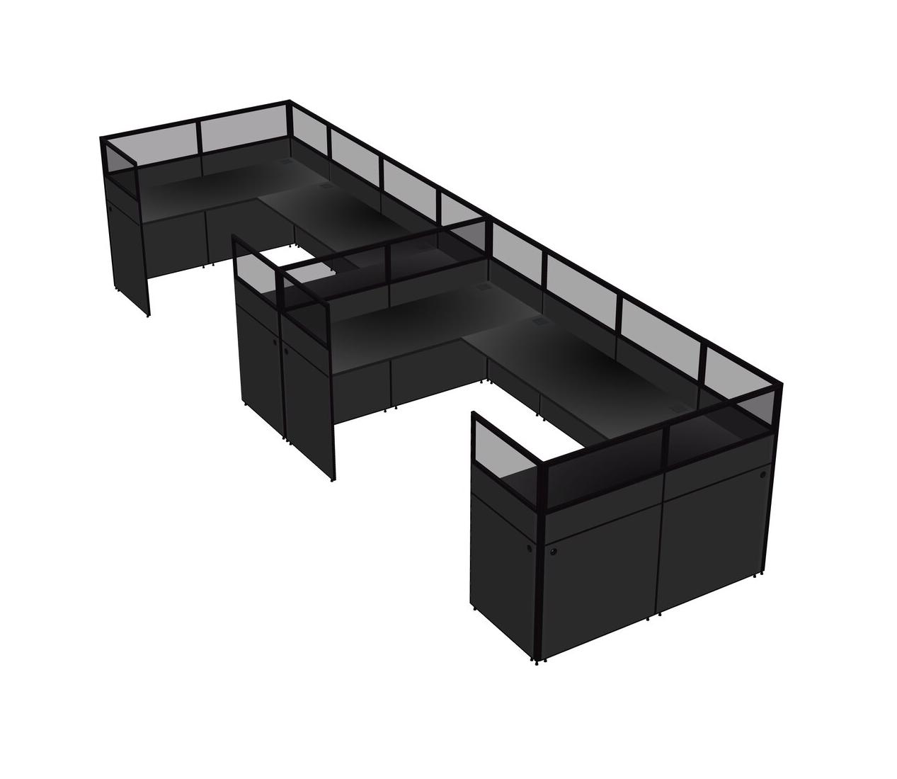 Black U-shaped Panel System For 2 Person For 2 User(s)