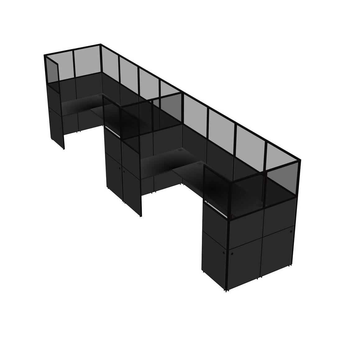 Black U-shaped Panel System For 2 Person For 2 User(s)