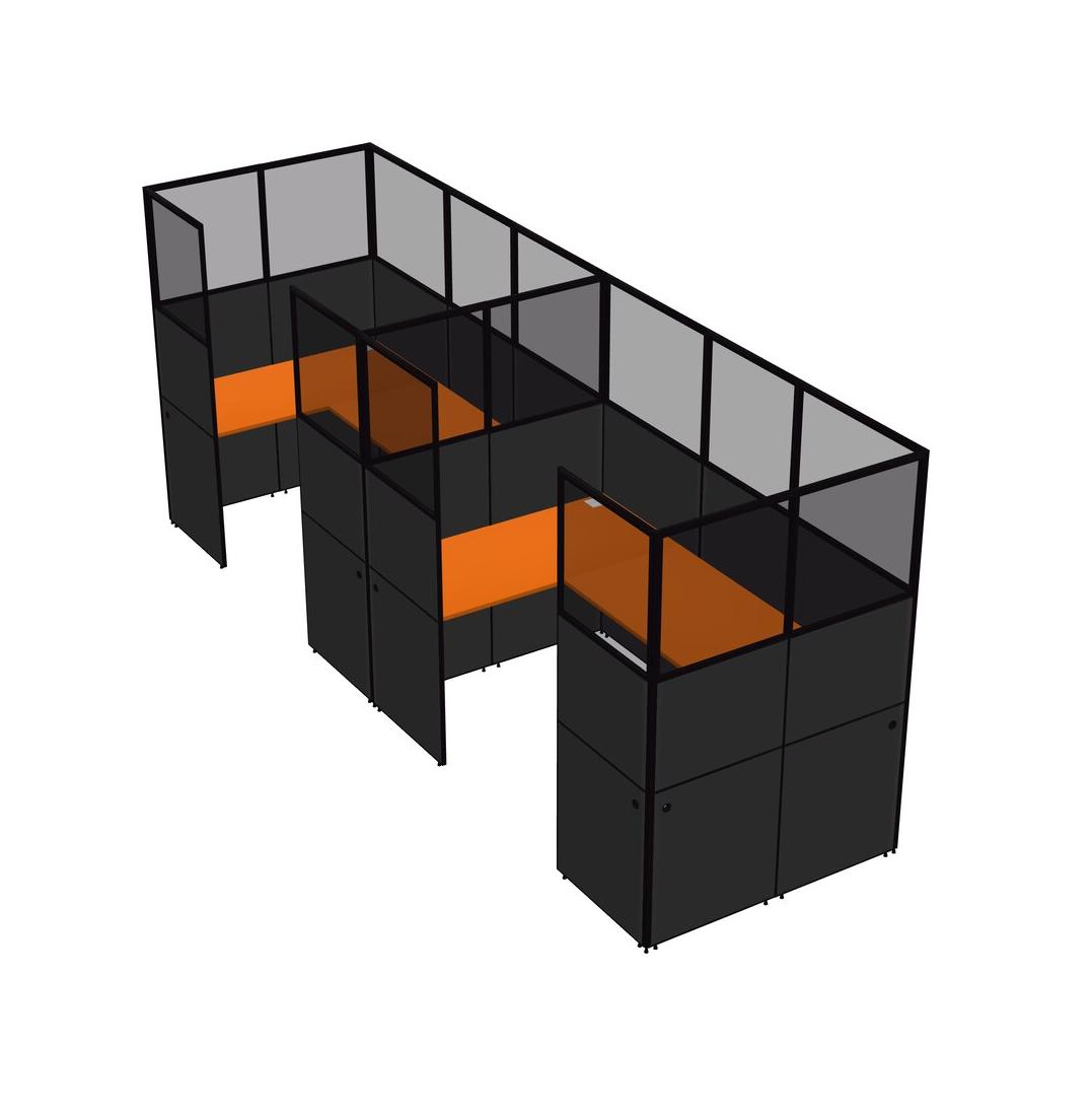 Orange U-shaped Panel System For 2 Person For 2 User(s)