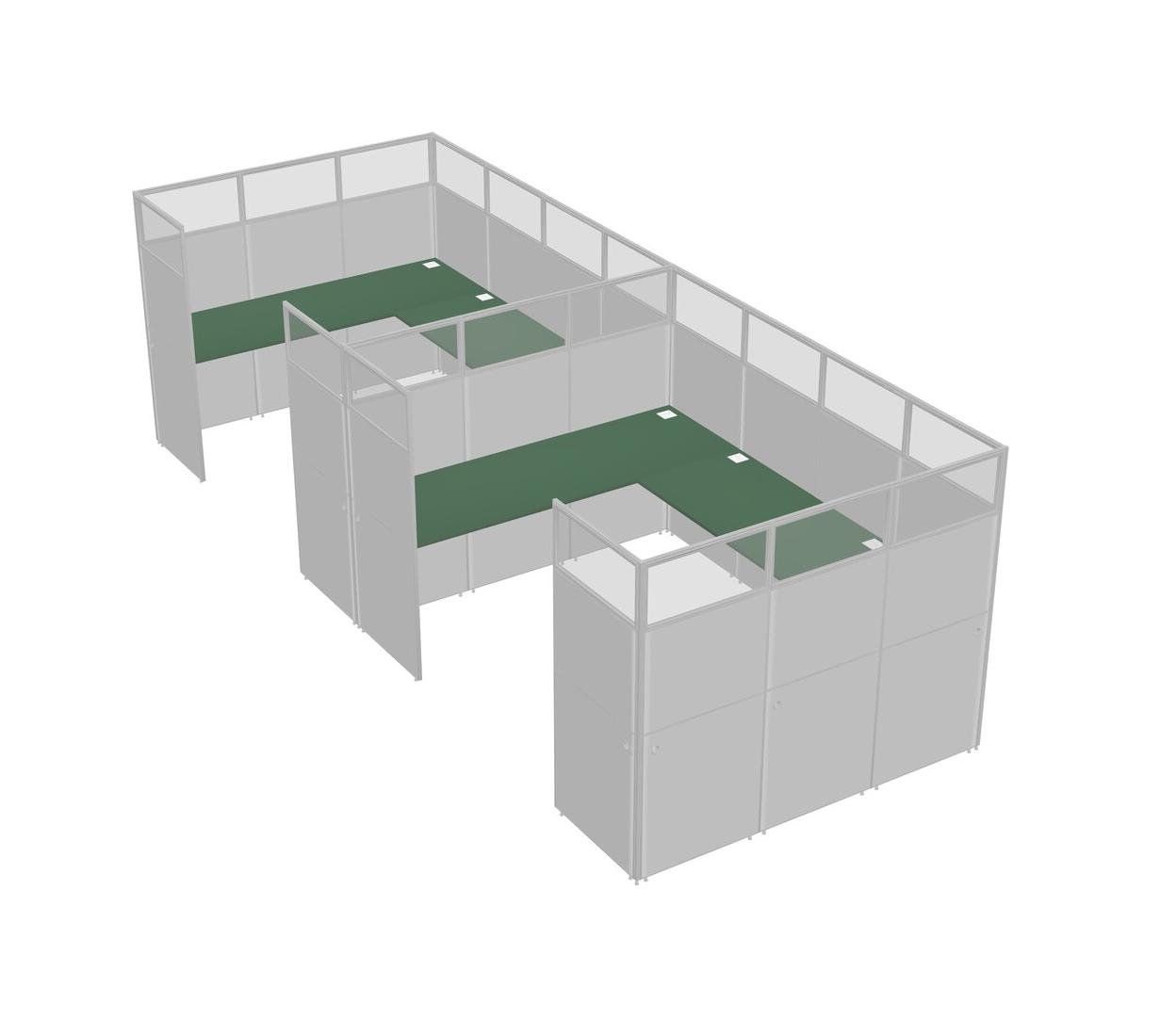 Green U-shaped Panel System For 2 Person For 2 User(s)