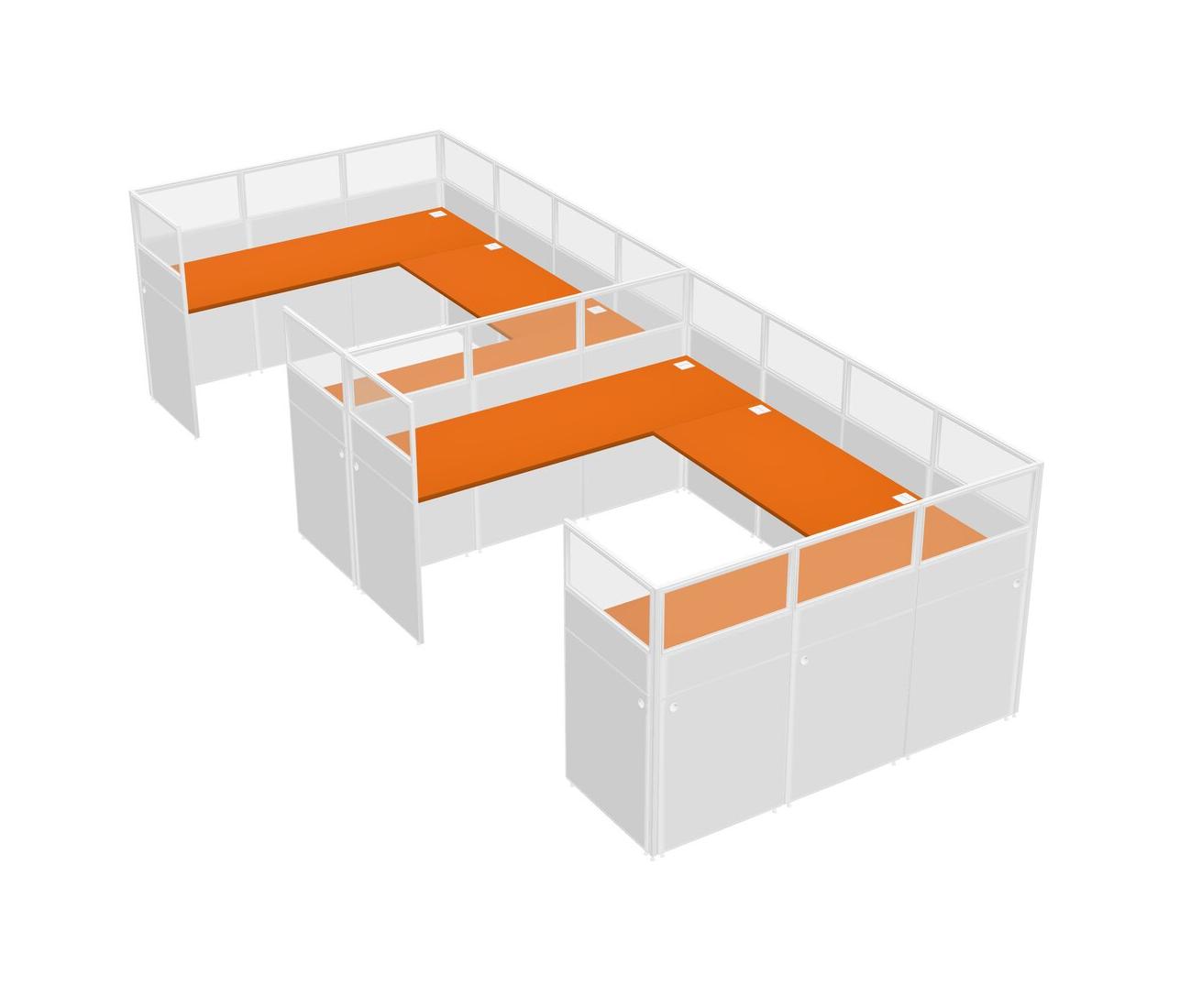 Orange U-shaped Panel System For 2 Person For 2 User(s)