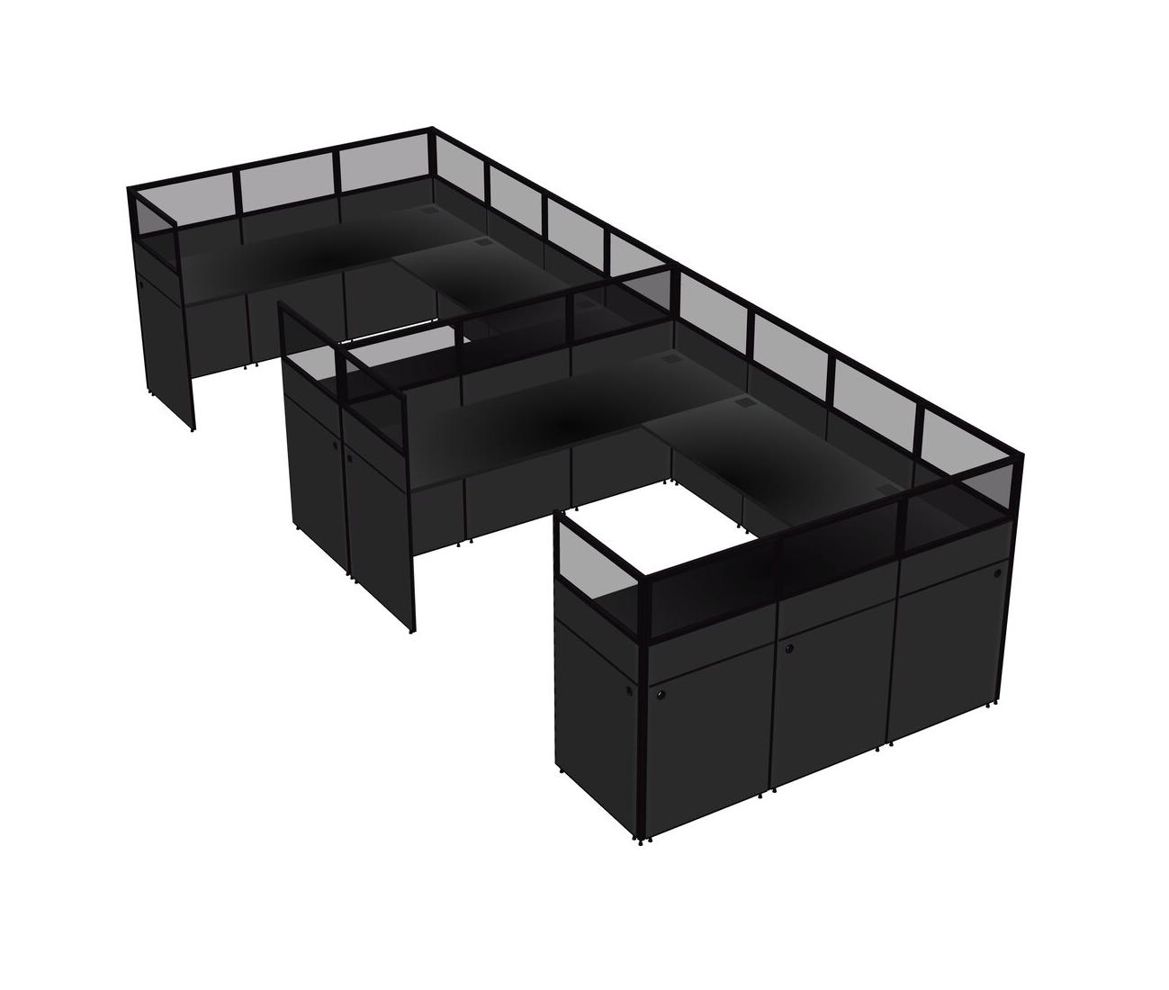 Black U-shaped Panel System For 2 Person For 2 User(s)