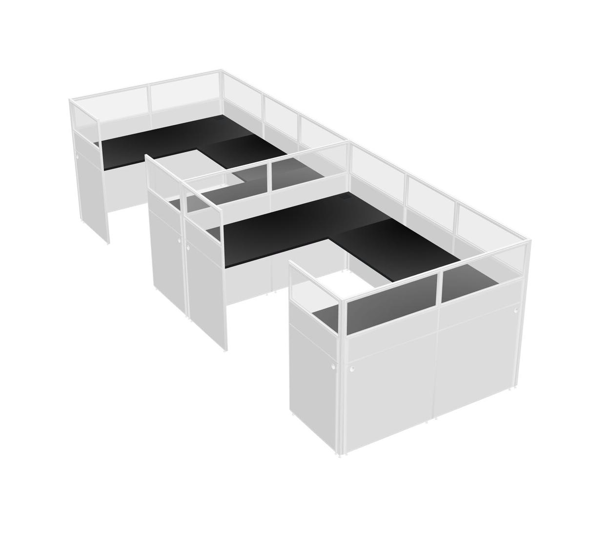 Black U-shaped Panel System For 2 Person For 2 User(s)