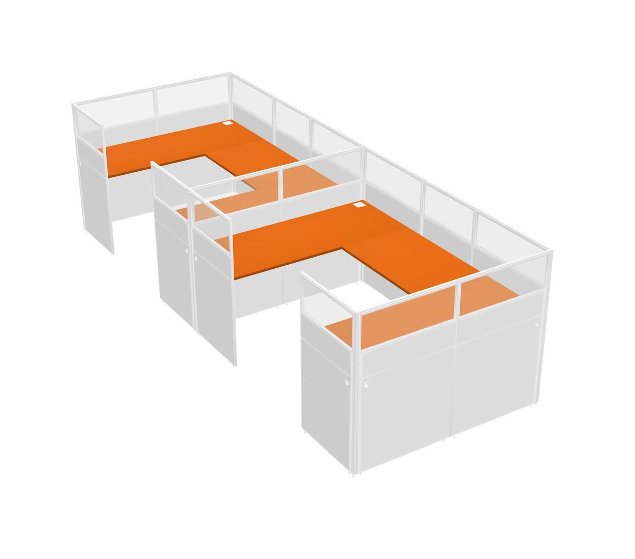 Orange U-shaped Panel System For 2 Person For 2 User(s)
