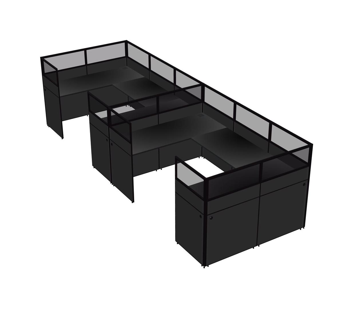 Black U-shaped Panel System For 2 Person For 2 User(s)