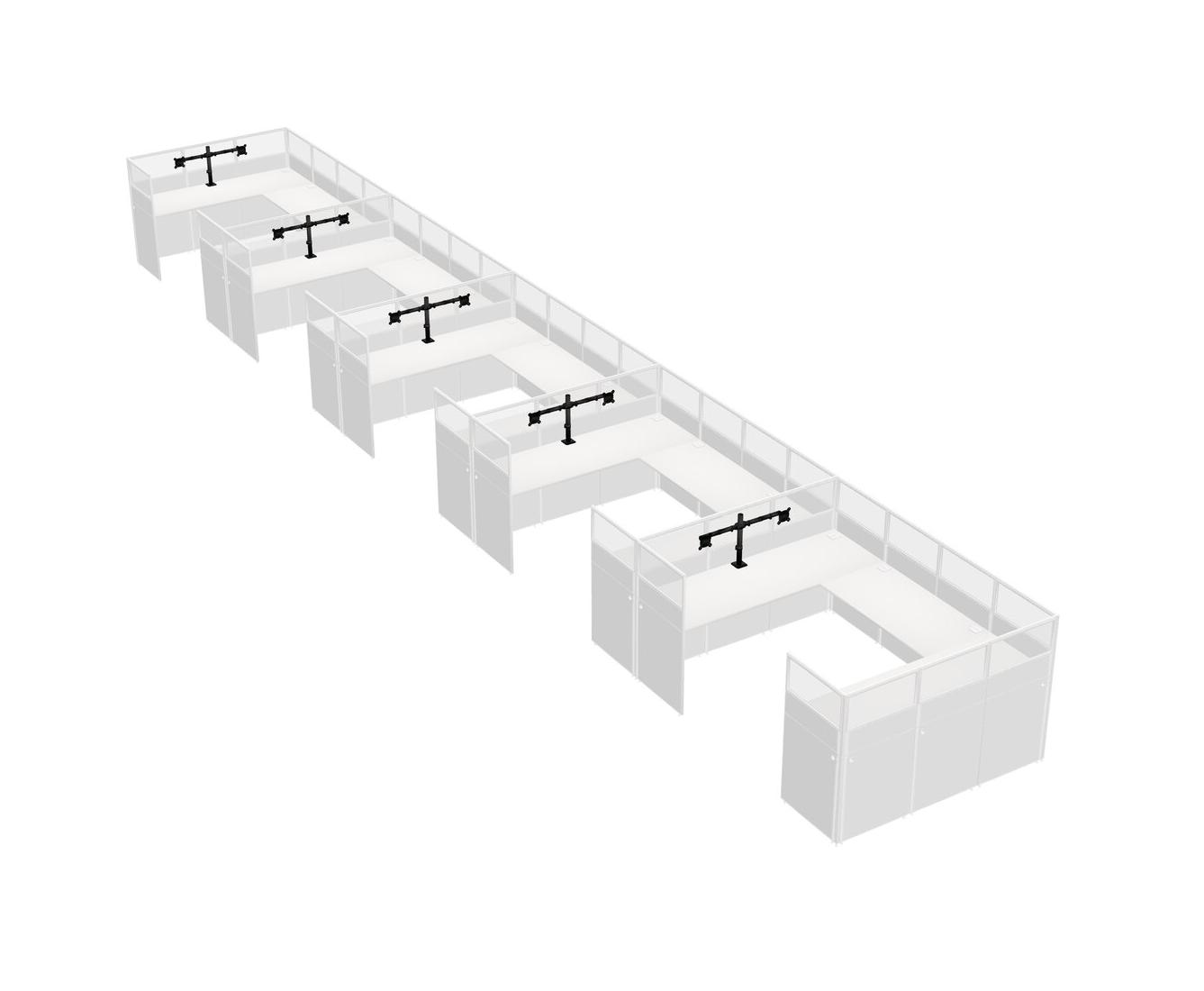 White U-shaped Panel System For 5 Person + Monitor Arm (double Arms) For 5 User(s)