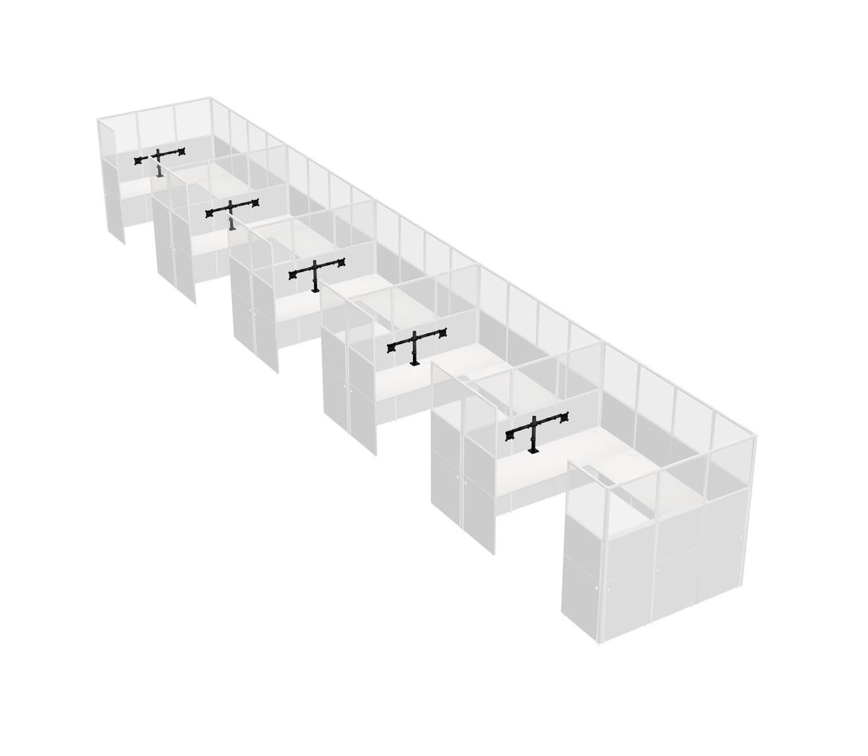 White U-shaped Panel System For 5 Person + Monitor Arm (double Arms) For 5 User(s)