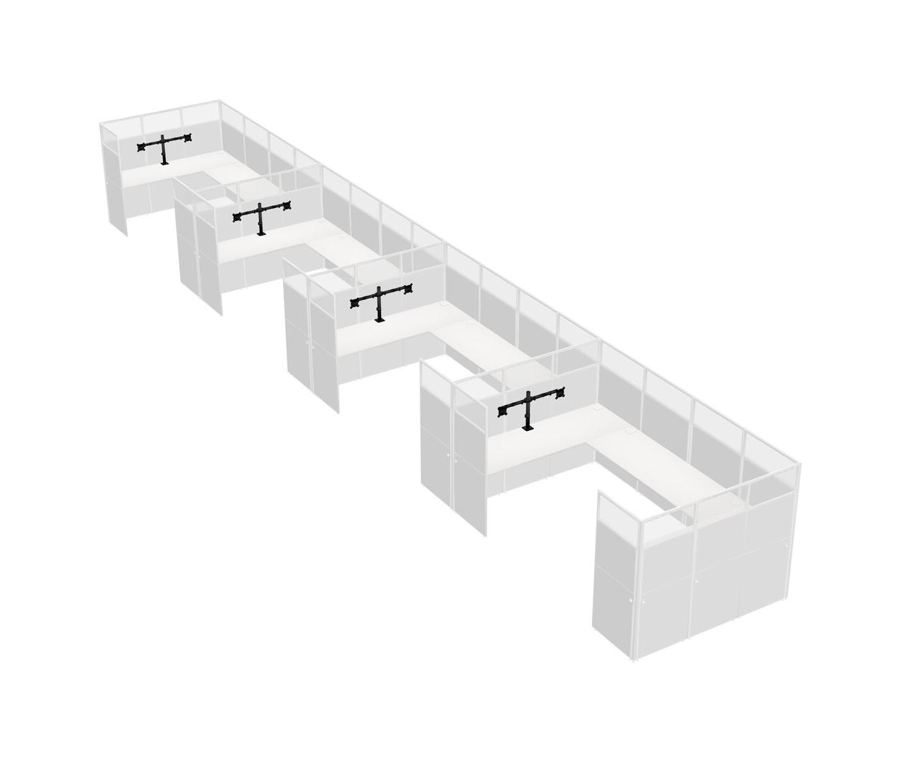 White U-shaped Panel System For 4 Person + Monitor Arm (double Arms) For 4 User(s)