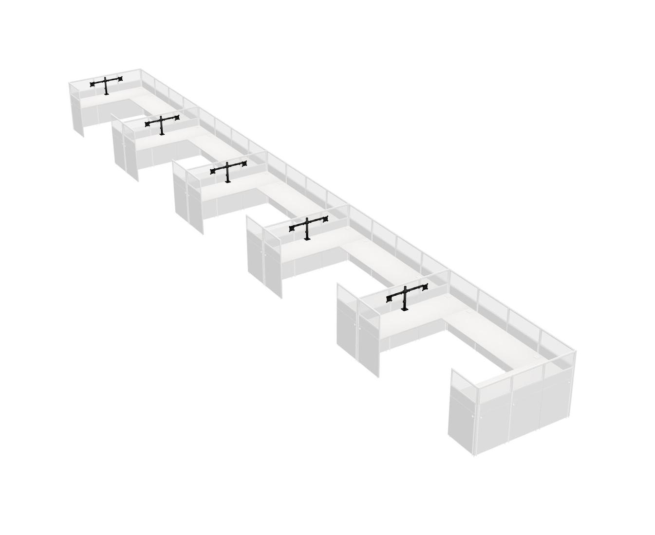White U-shaped Panel System For 5 Person + Monitor Arm (double Arms) For 5 User(s)