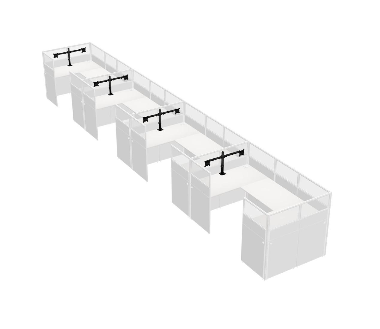 White U-shaped Panel System For 4 Person + Monitor Arm (double Arms) For 4 User(s)