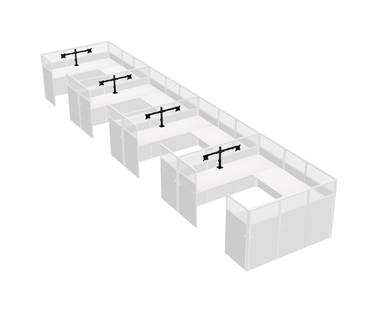 White U-shaped Panel System For 4 Person + Monitor Arm (double Arms) For 4 User(s)