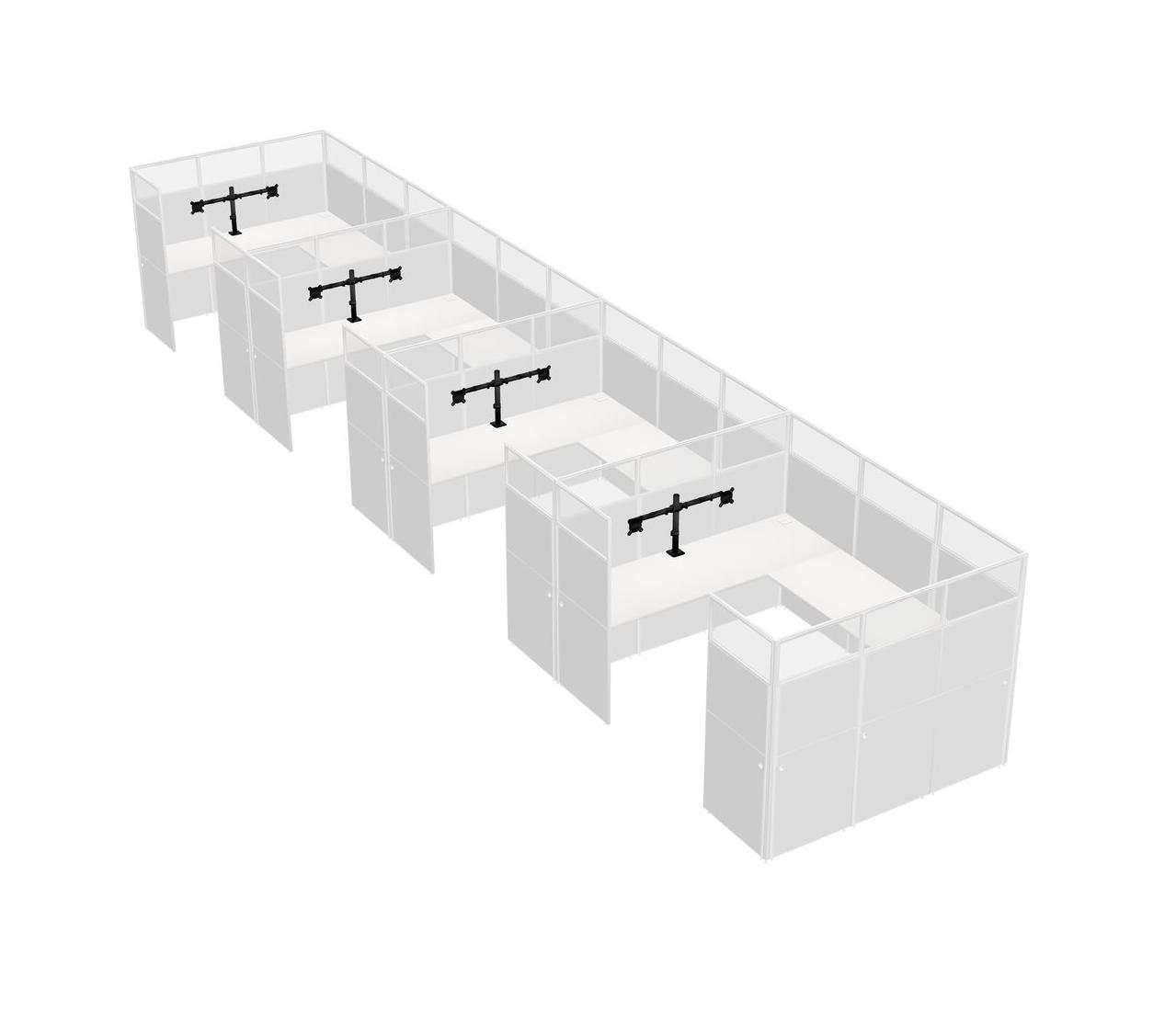 White U-shaped Panel System For 4 Person + Monitor Arm (double Arms) For 4 User(s)