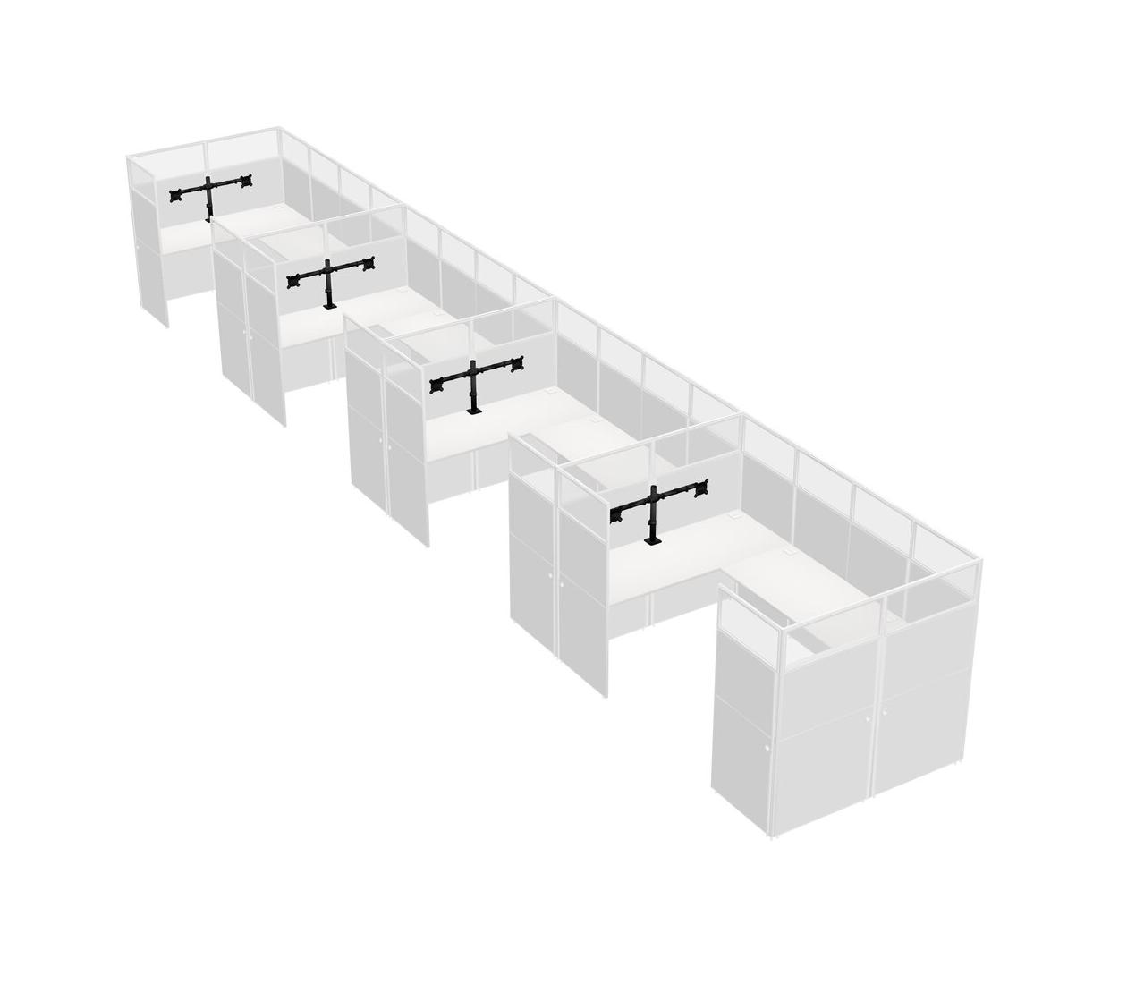 White U-shaped Panel System For 4 Person + Monitor Arm (double Arms) For 4 User(s)