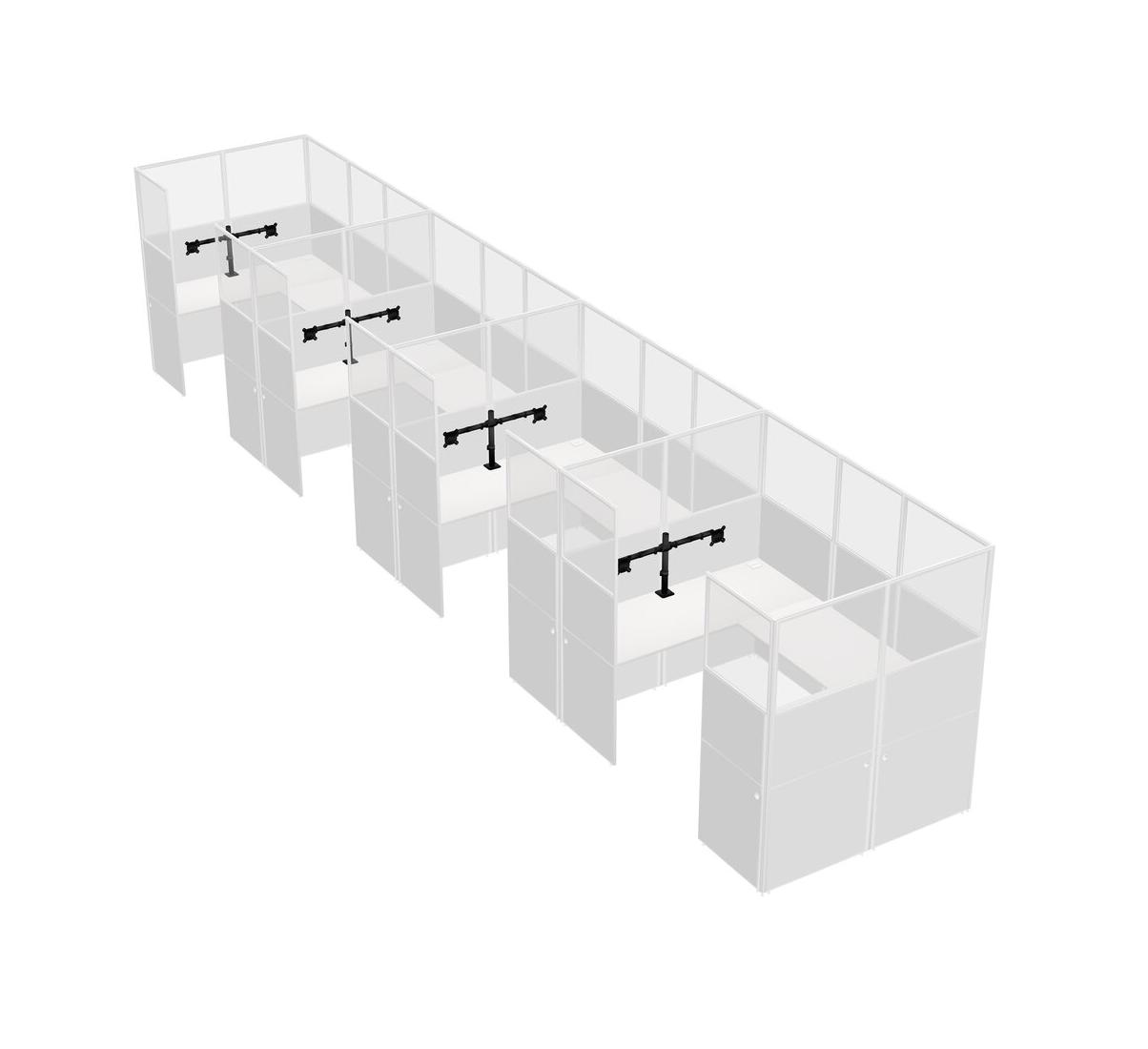 White U-shaped Panel System For 4 Person + Monitor Arm (double Arms) For 4 User(s)