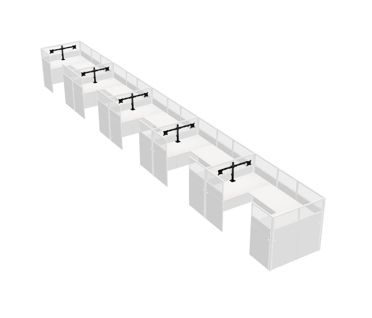 White U-shaped Panel System For 5 Person + Monitor Arm (double Arms) For 5 User(s)