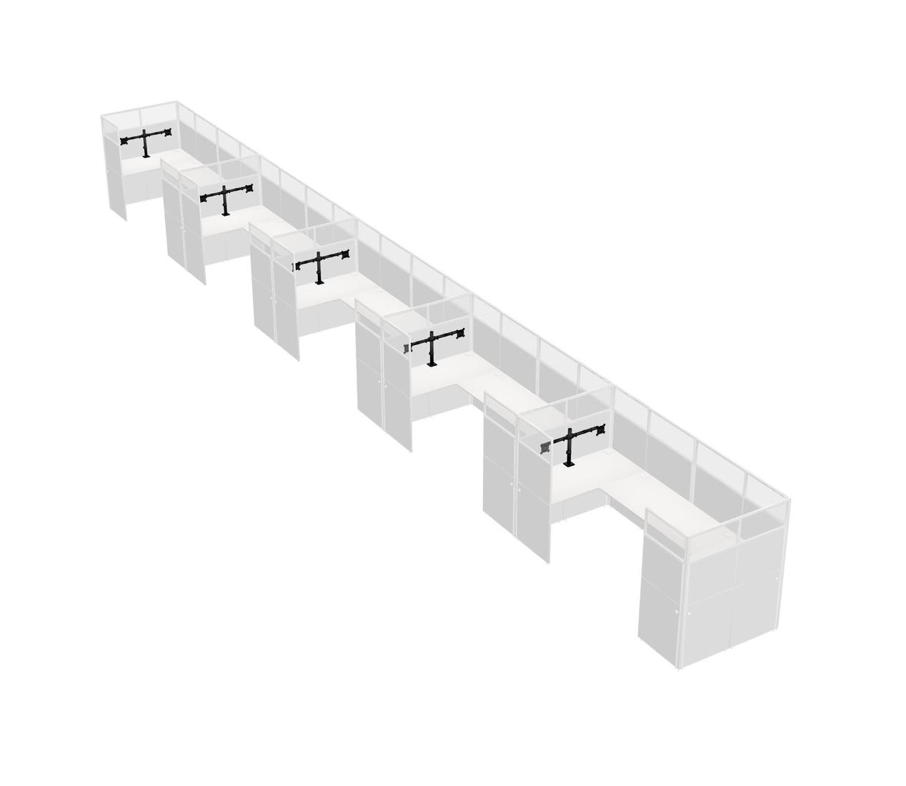 White U-shaped Panel System For 5 Person + Monitor Arm (double Arms) For 5 User(s)