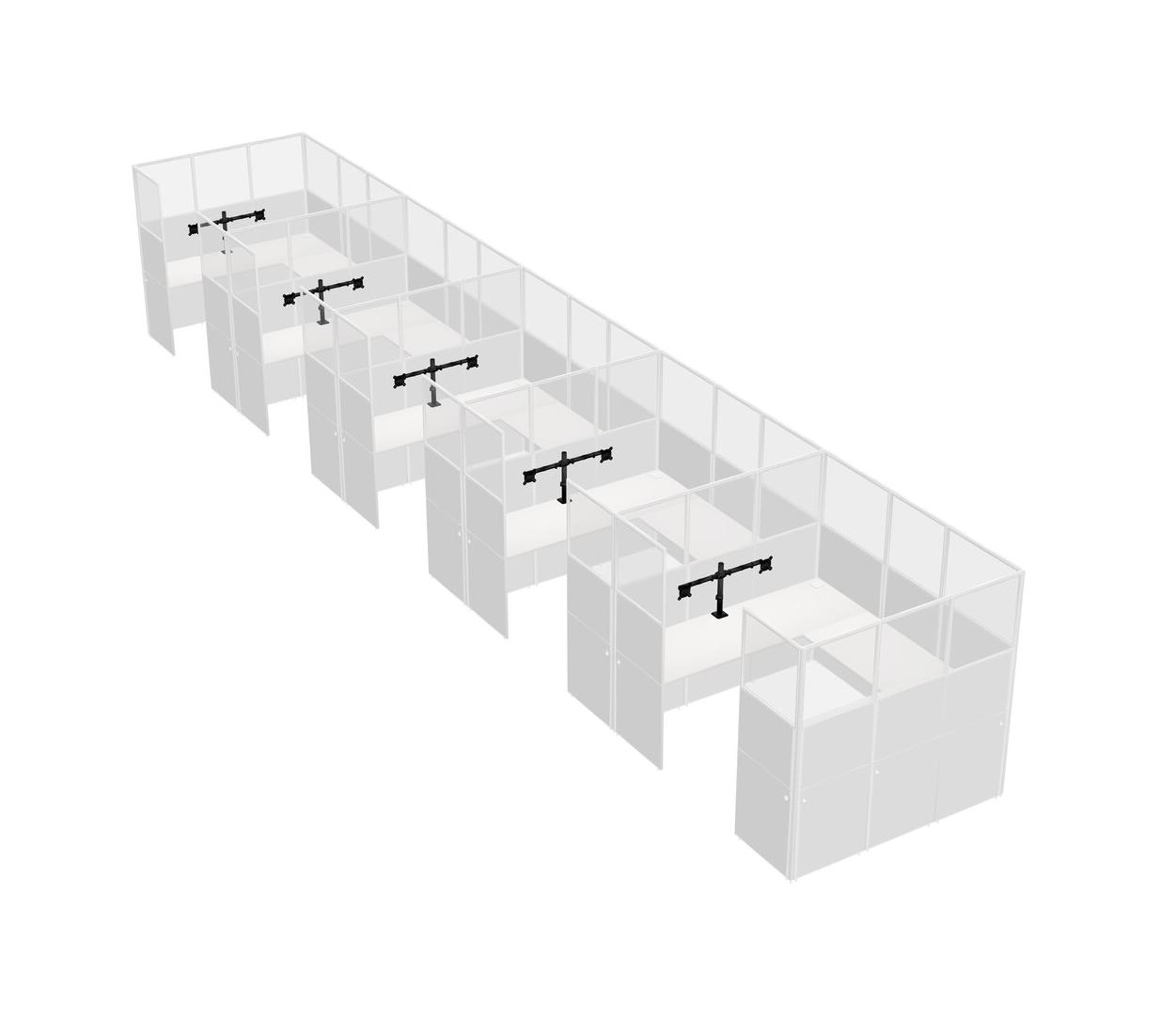 White U-shaped Panel System For 5 Person + Monitor Arm (double Arms) For 5 User(s)