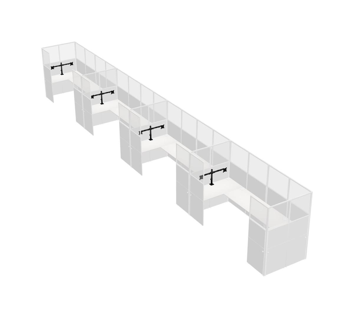 White U-shaped Panel System For 4 Person + Monitor Arm (double Arms) For 4 User(s)