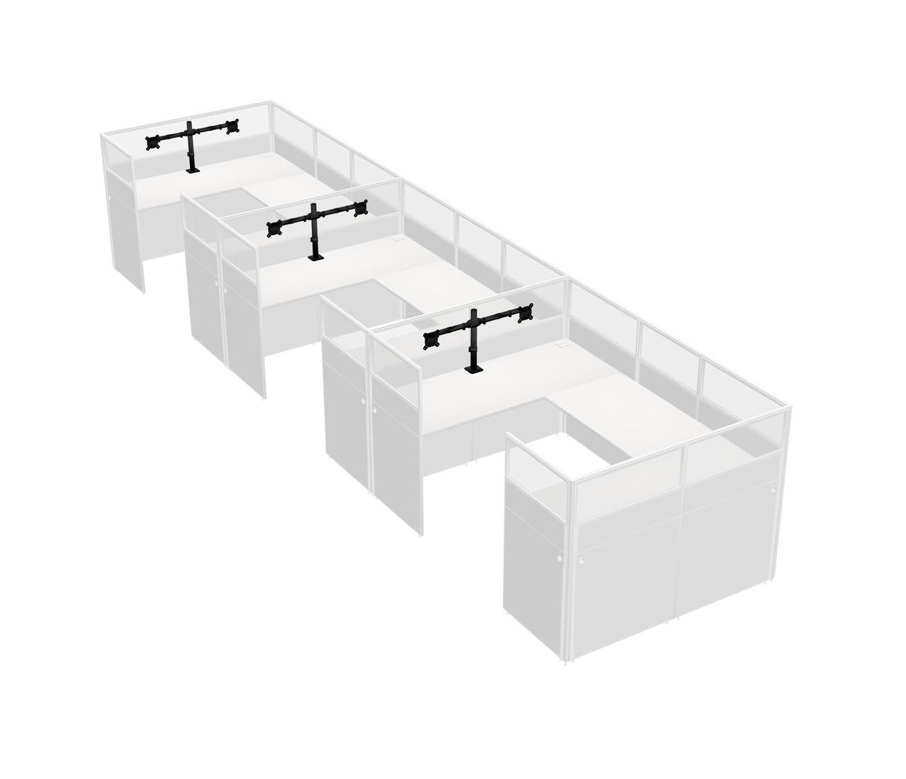 White U-shaped Panel System For 3 Person + Monitor Arm (double Arms) For 3 User(s)