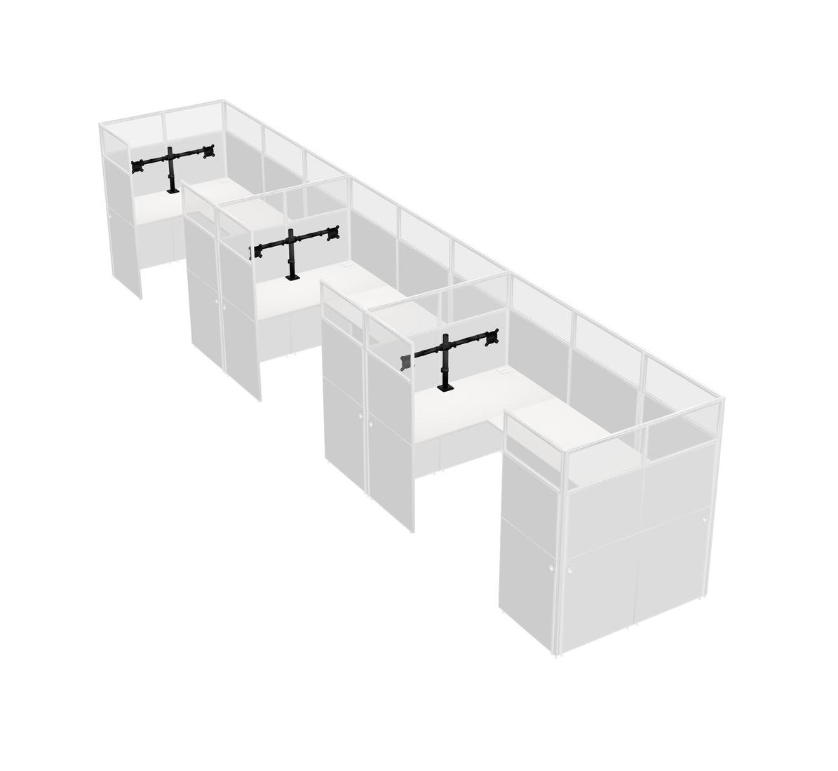White U-shaped Panel System For 3 Person + Monitor Arm (double Arms) For 3 User(s)