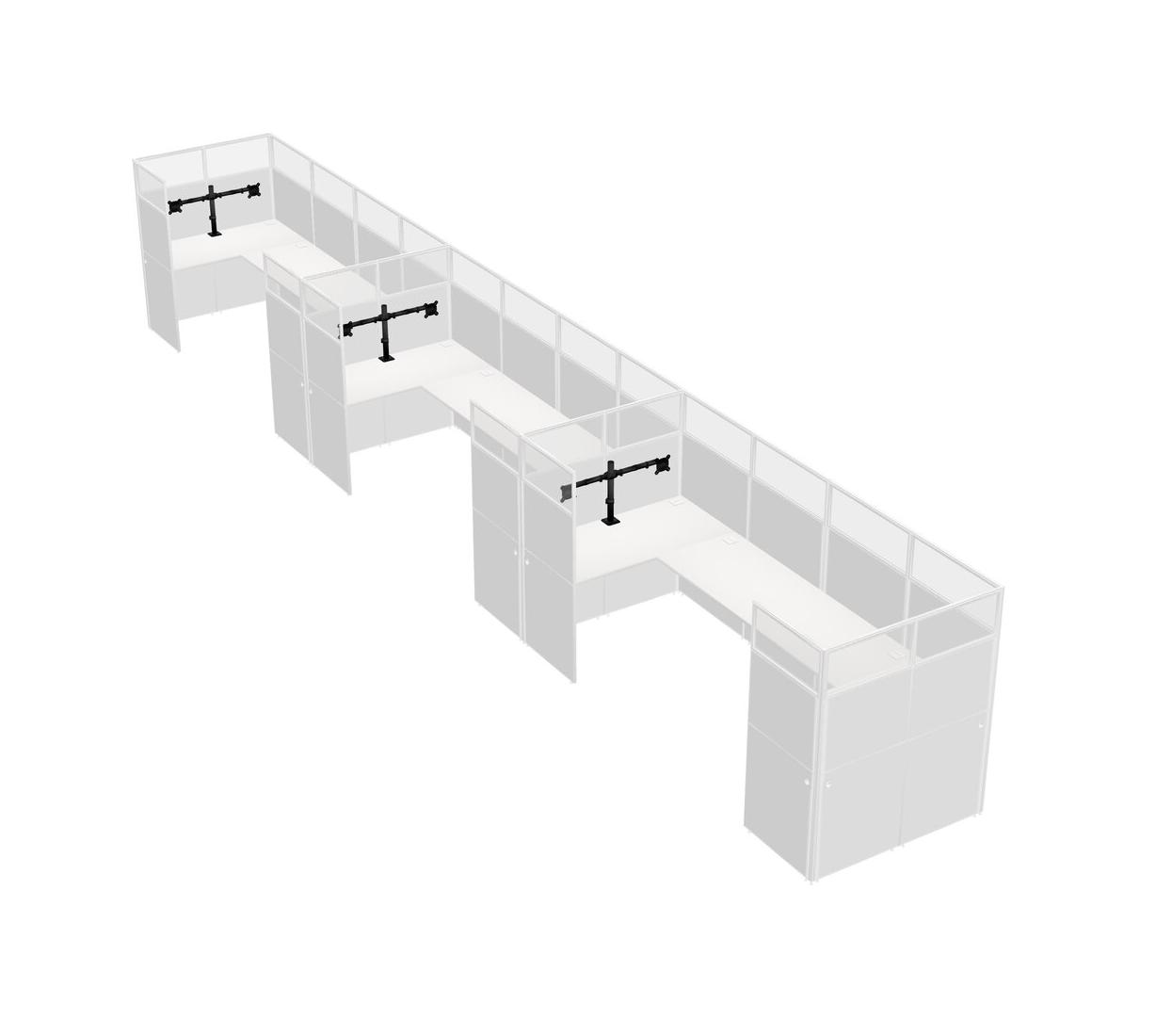 White U-shaped Panel System For 3 Person + Monitor Arm (double Arms) For 3 User(s)