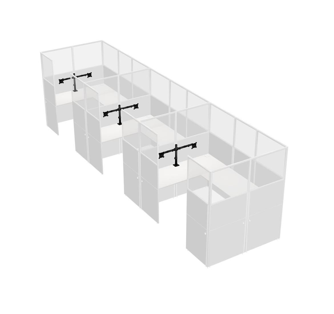 White U-shaped Panel System For 3 Person + Monitor Arm (double Arms) For 3 User(s)