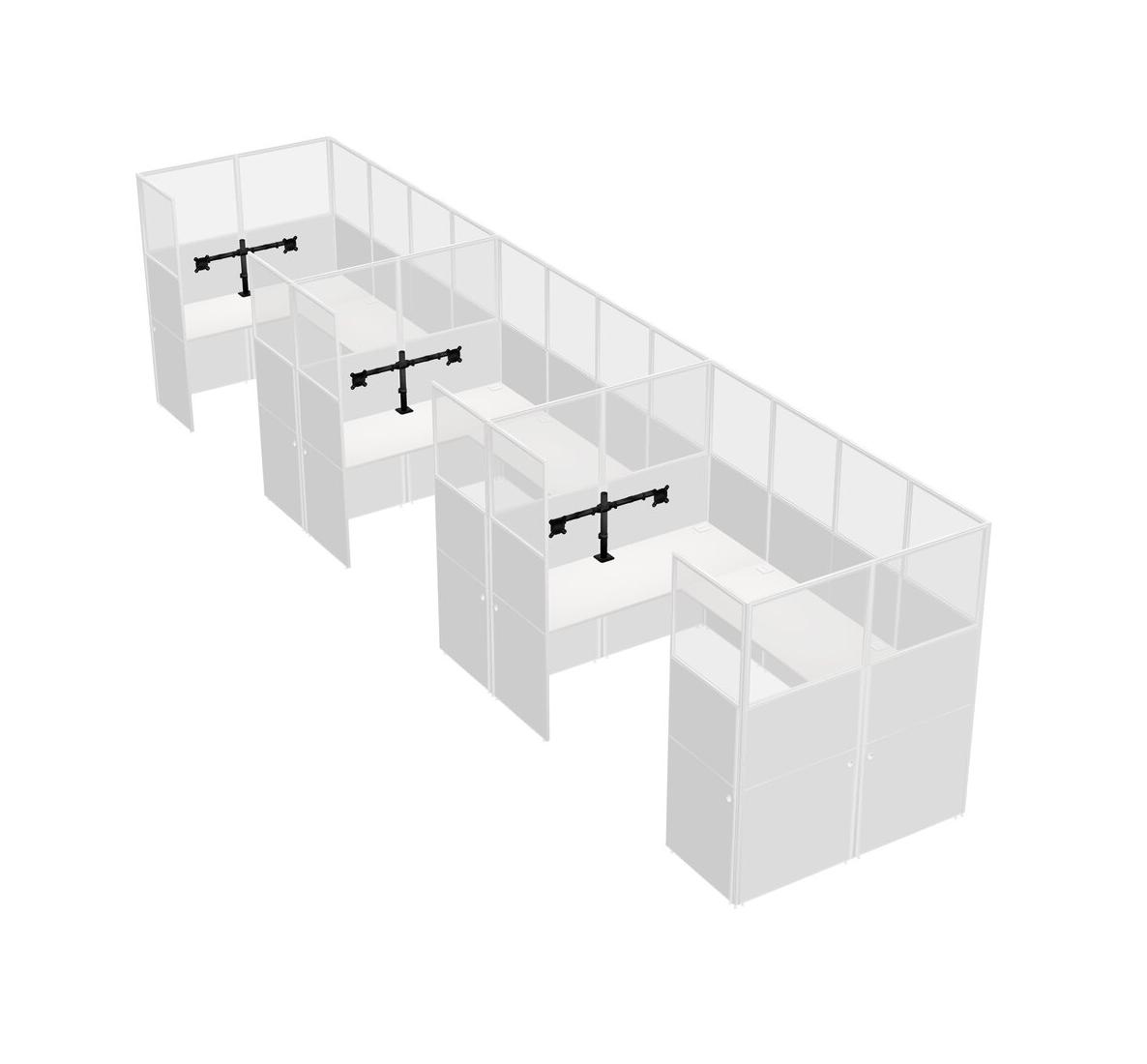 White U-shaped Panel System For 3 Person + Monitor Arm (double Arms) For 3 User(s)