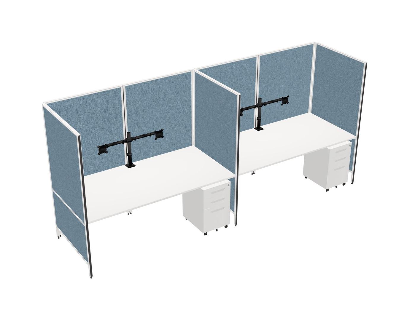 White Flexible Panel System For 2 + Metal Mobile Drawers + Monitor Arm (double Arms)