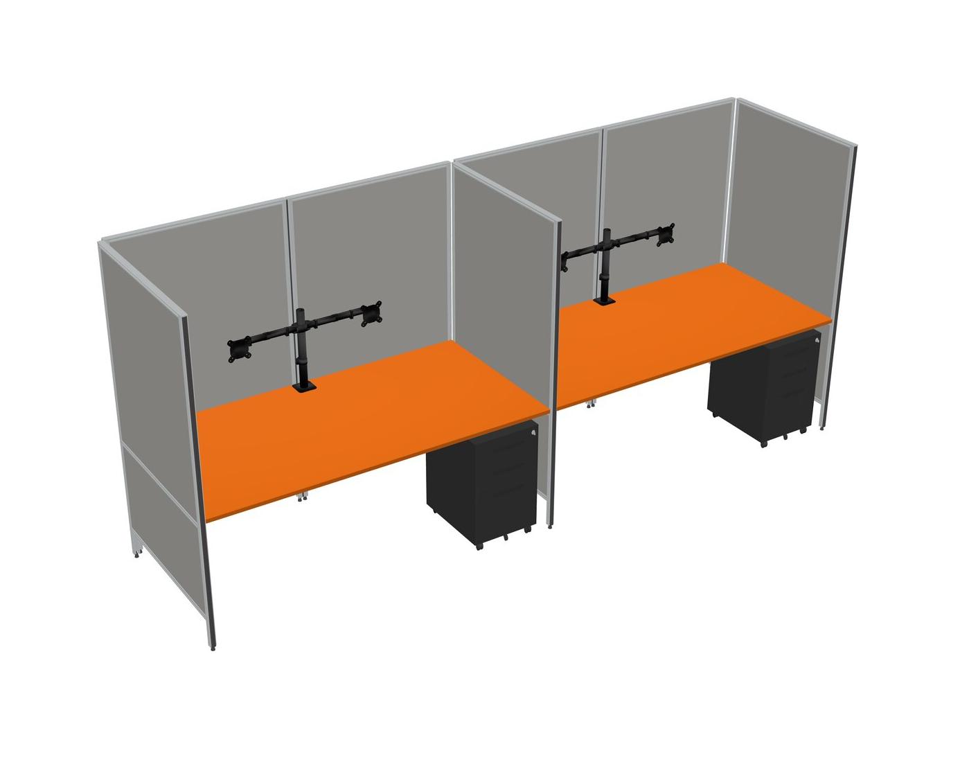 Orange Flexible Panel System For 2 + Metal Mobile Drawers + Monitor Arm (double Arms)