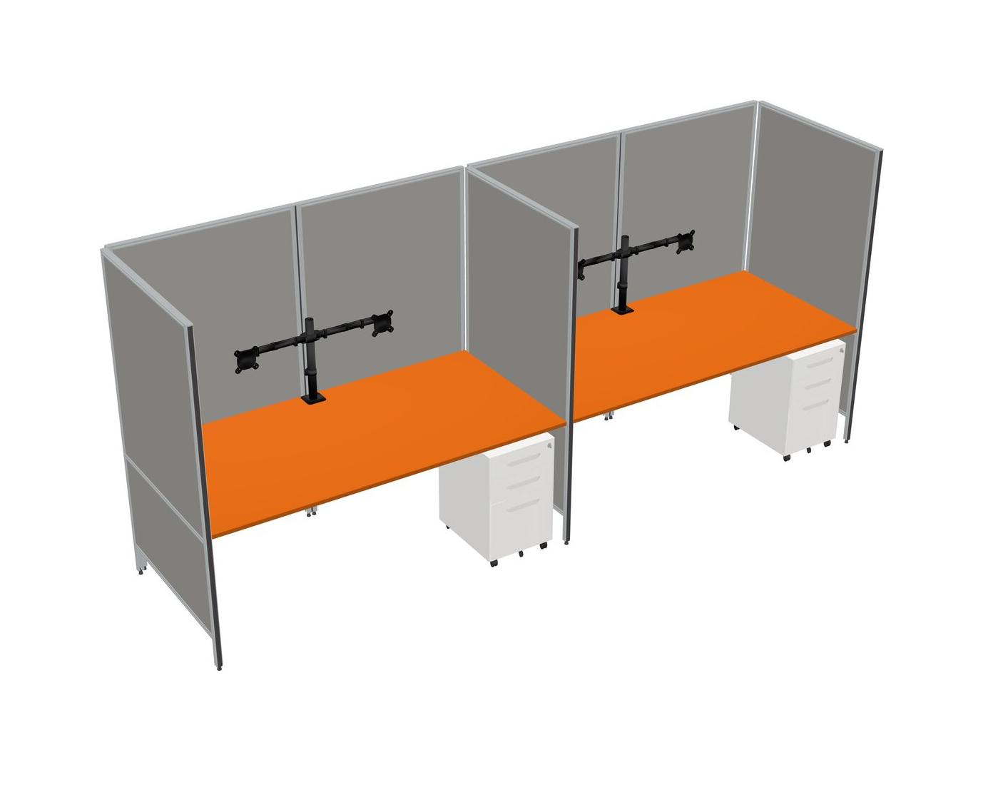 Orange Flexible Panel System For 2 + Metal Mobile Drawers + Monitor Arm (double Arms)